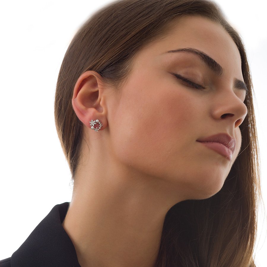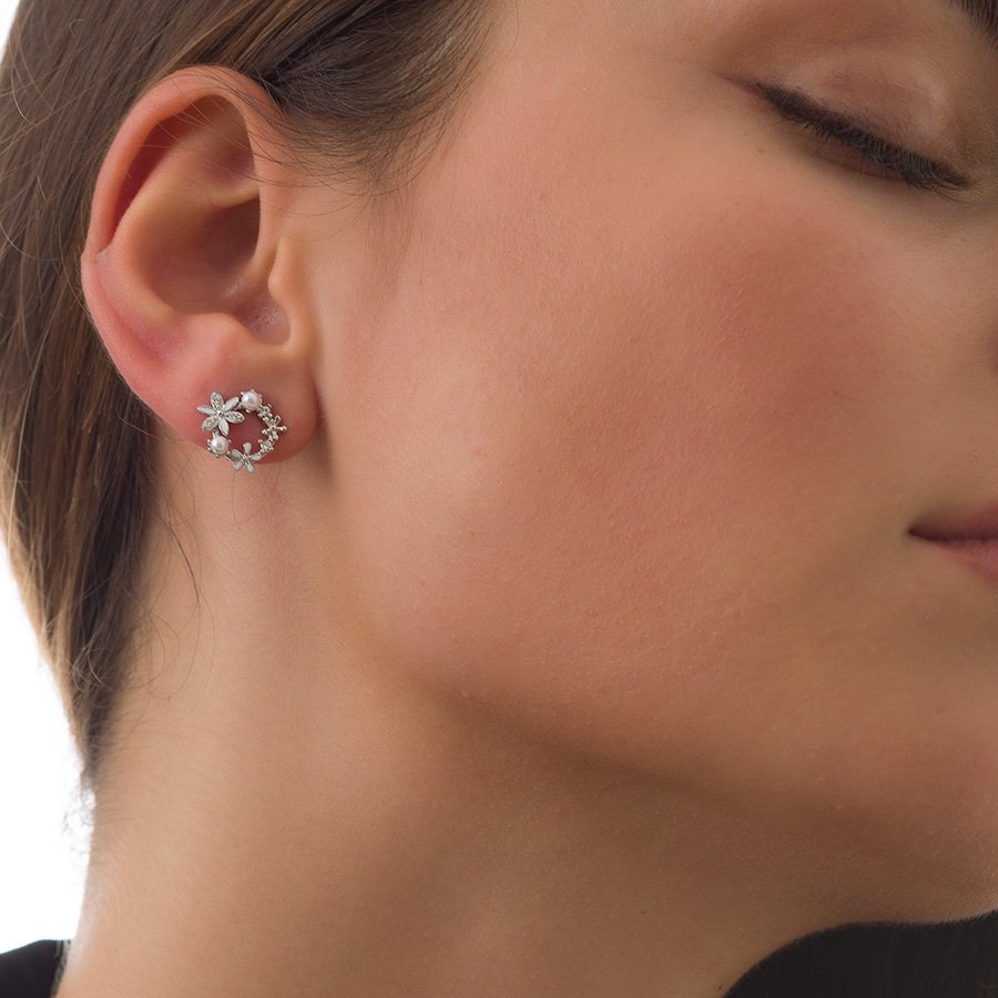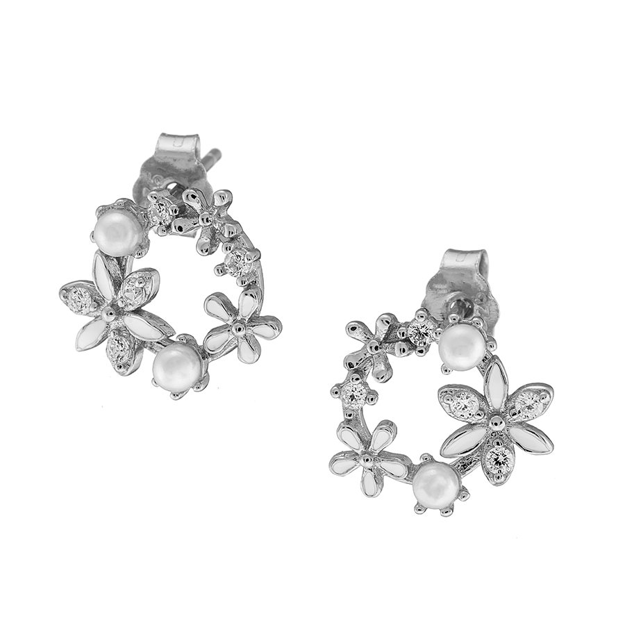 Oxzen σκουλαρίκια καρφωτά ασημένια στεφανάκι με πέρλες και πέτρες ζιργκόν