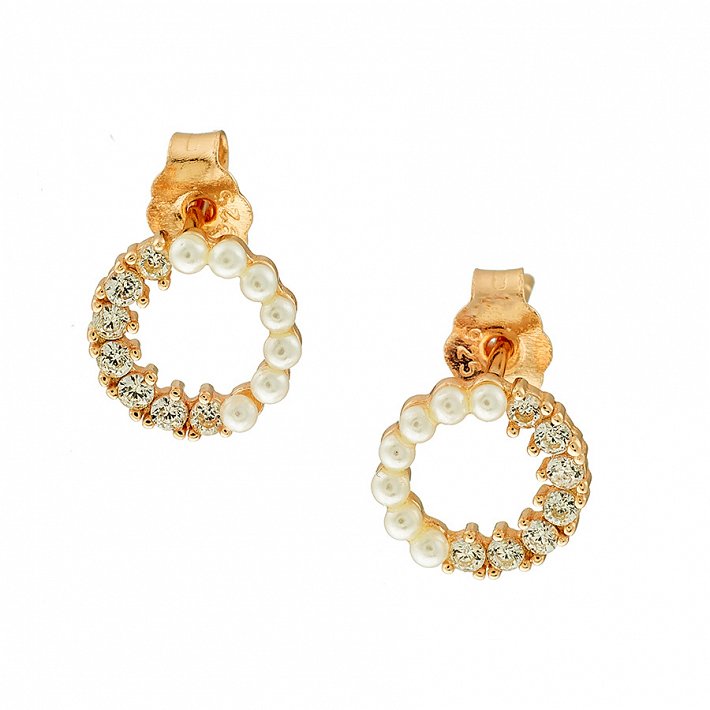 Oxzen σκουλαρίκια καρφωτά ασημένια στεφανάκι με περλίτσες και λευκά ζιργκόν