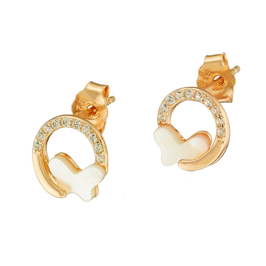 Oxzen σκουλαρίκια καρφωτά ασημένια στεφανάκι με πεταλούδα και λευκά ζιργκόν