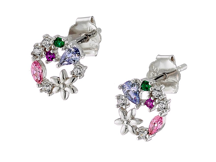 Oxzen σκουλαρίκια καρφωτά ασημένια στεφανάκι με ζιργκόν