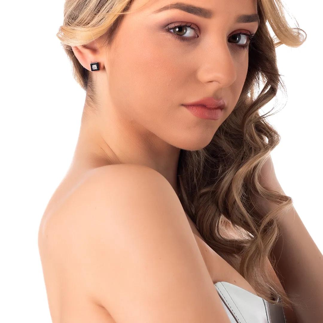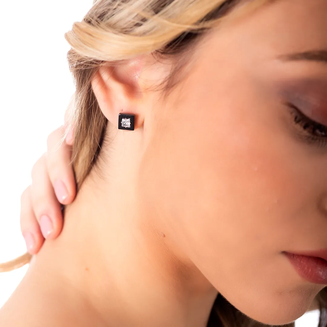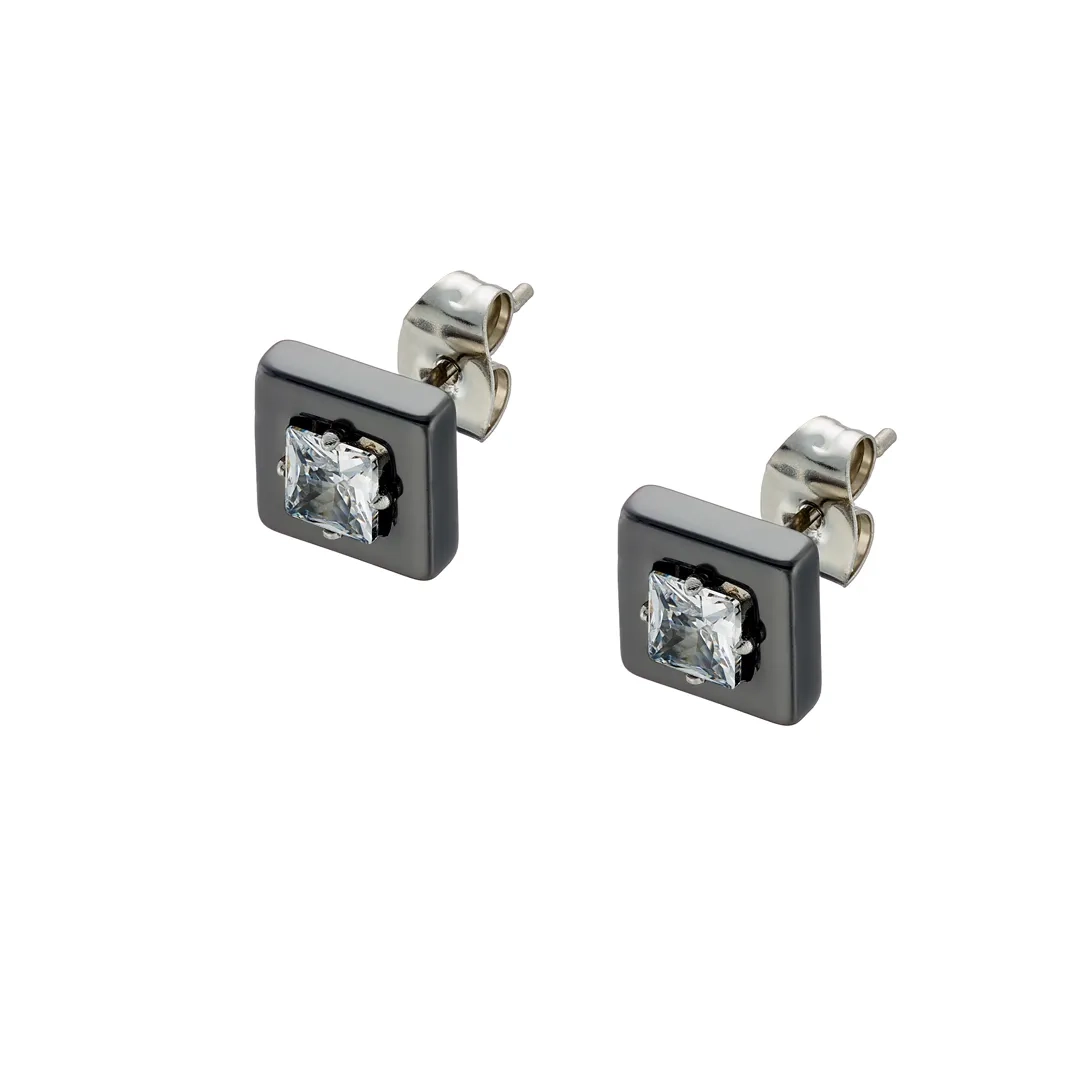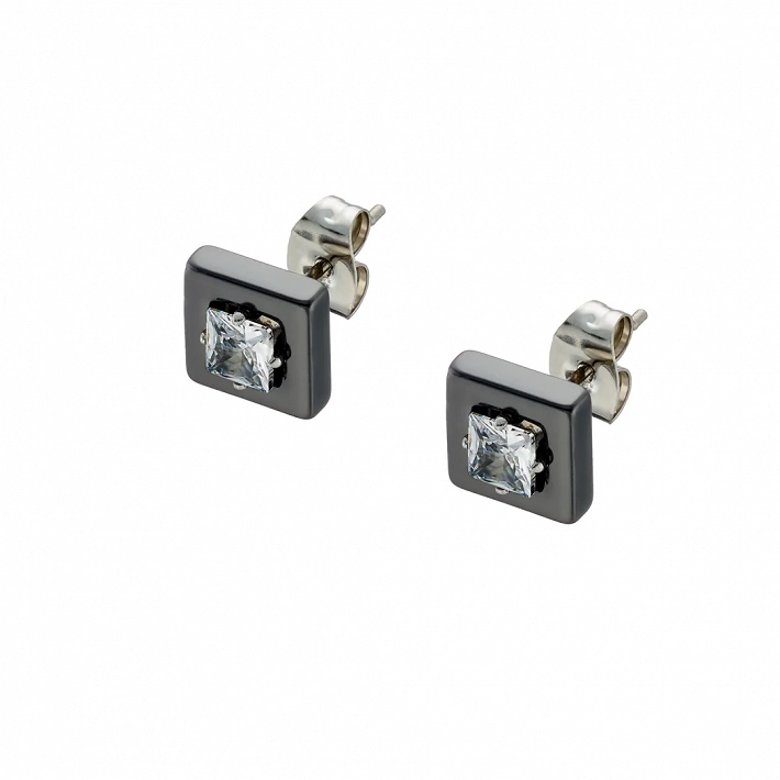 Oxzen σκουλαρίκια καρφωτά ατσάλινα κεραμικά τετράγωνα με λευκό ζιργκόν