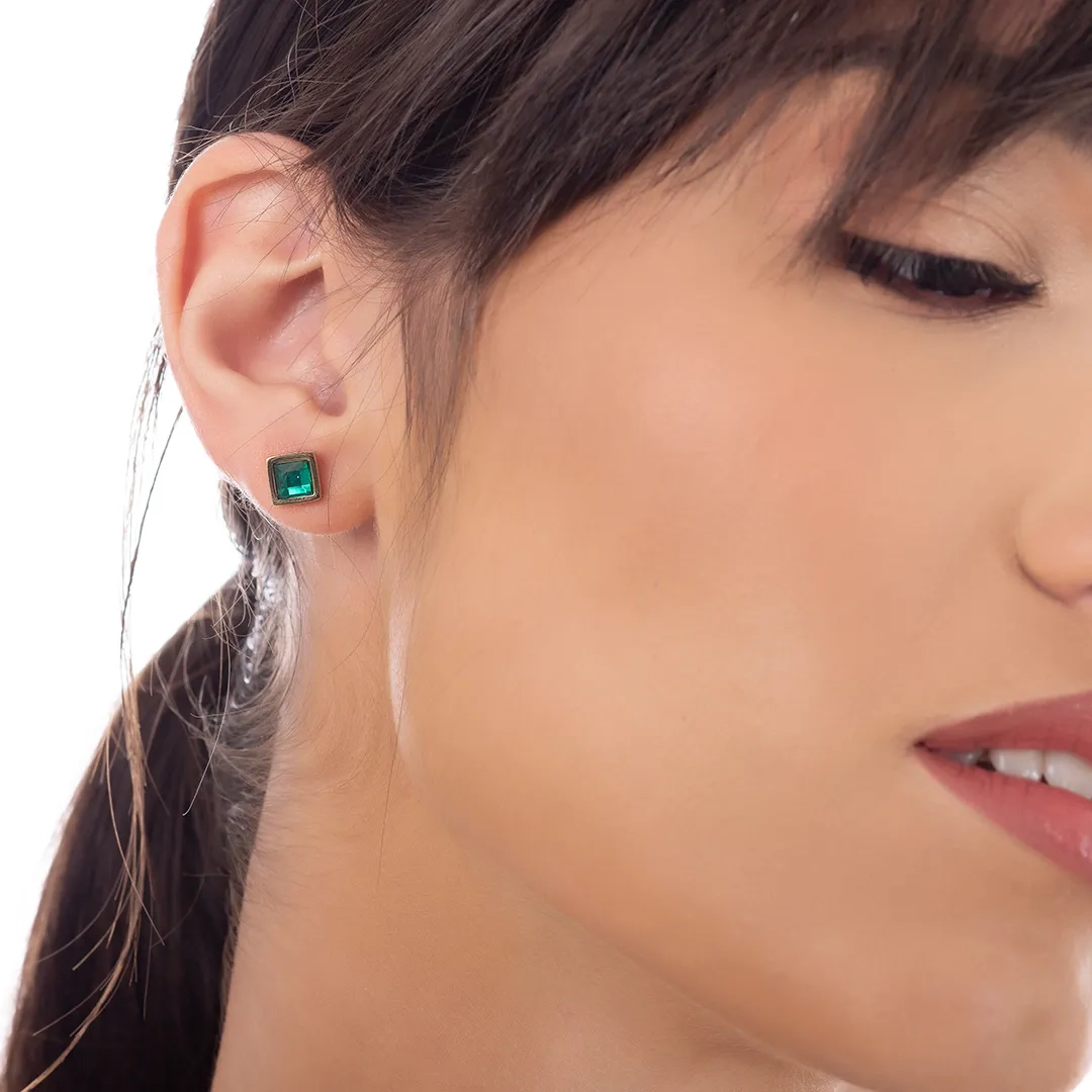 Oxzen σκουλαρίκια καρφωτά ατσάλινα τετράγωνα με ζιργκόν