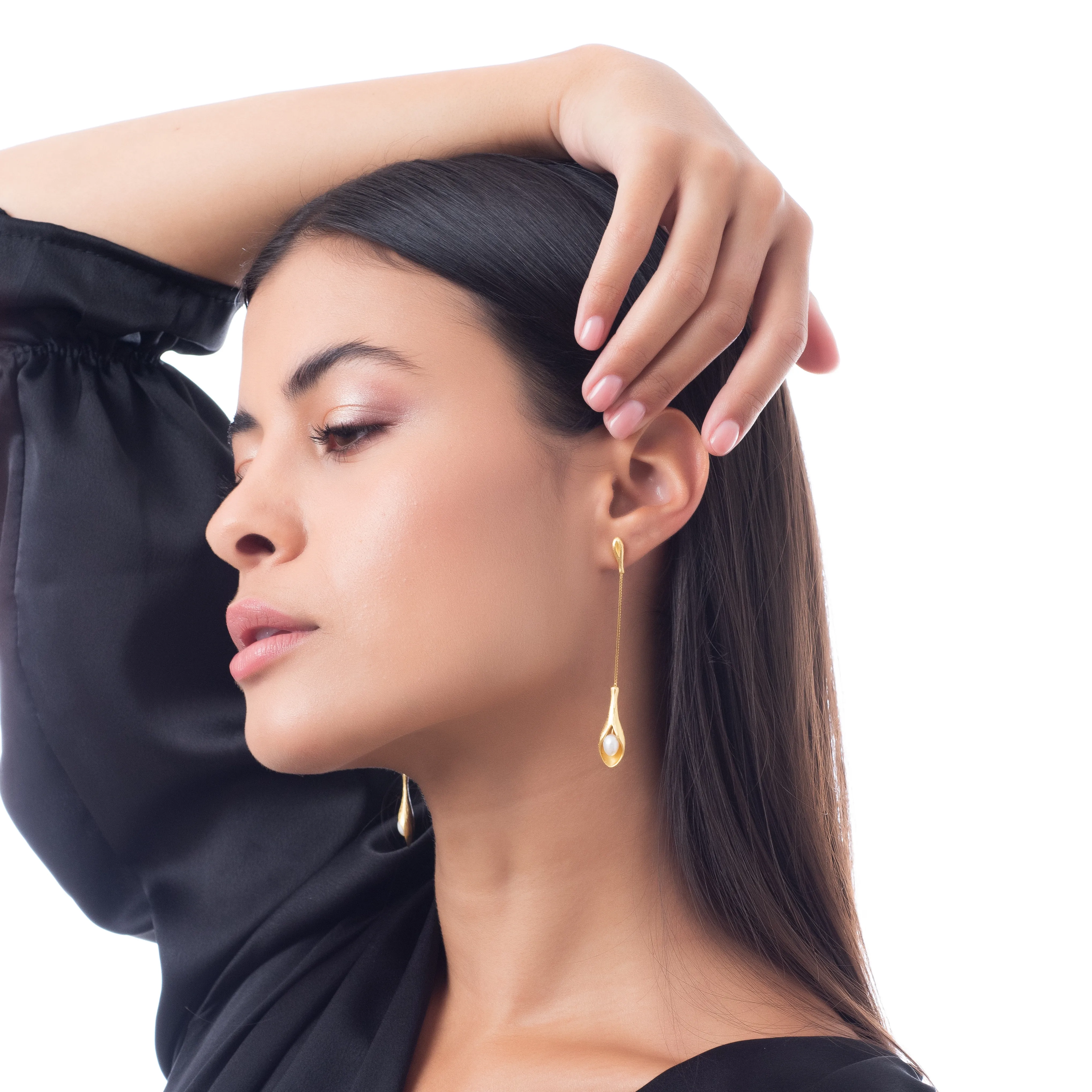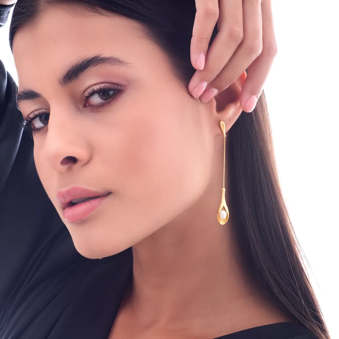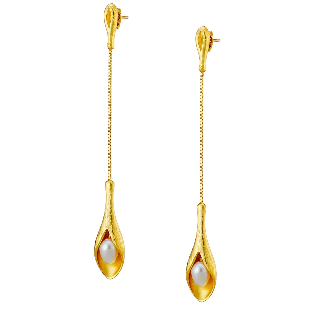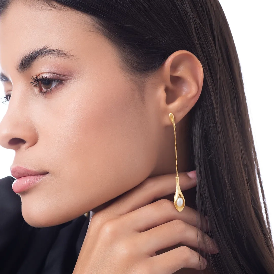Oxzen σκουλαρίκια κρεμαστά ασημένια χειροποίητα με πέρλα