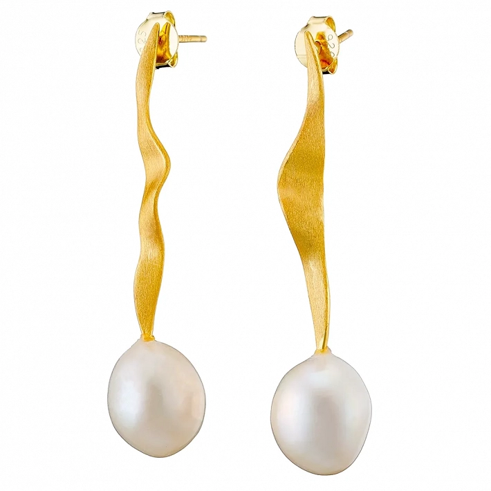 Oxzen σκουλαρίκια κρεμαστά ασημένια χειροποίητα με πέρλα