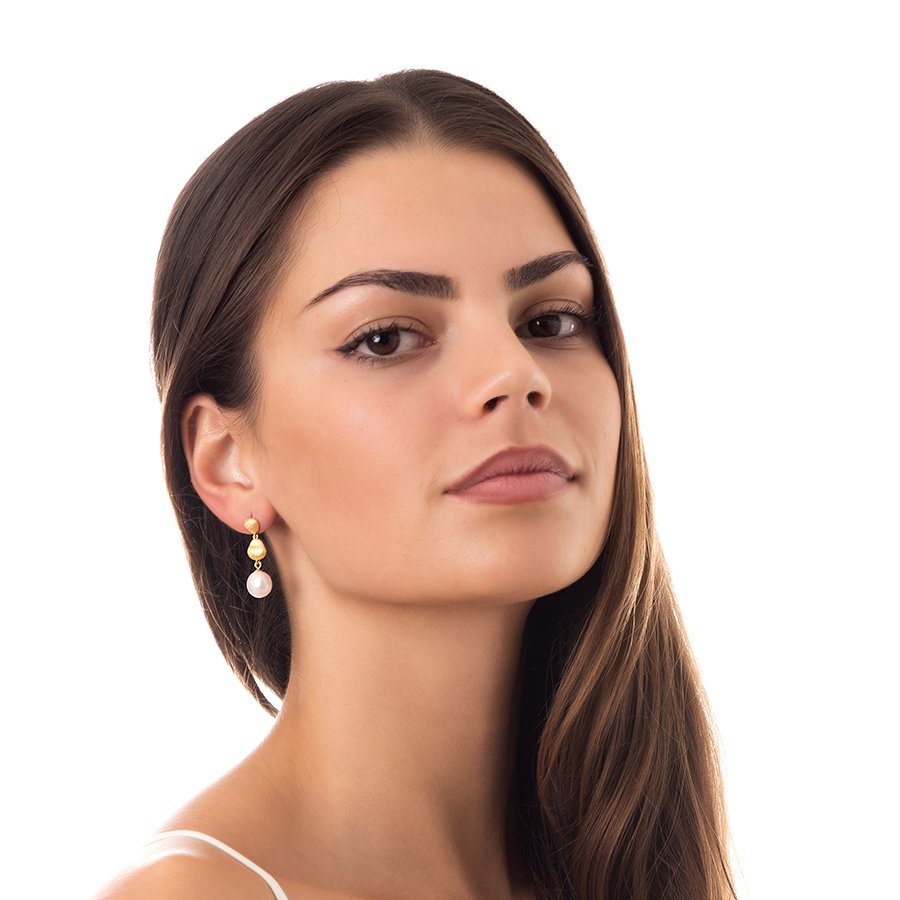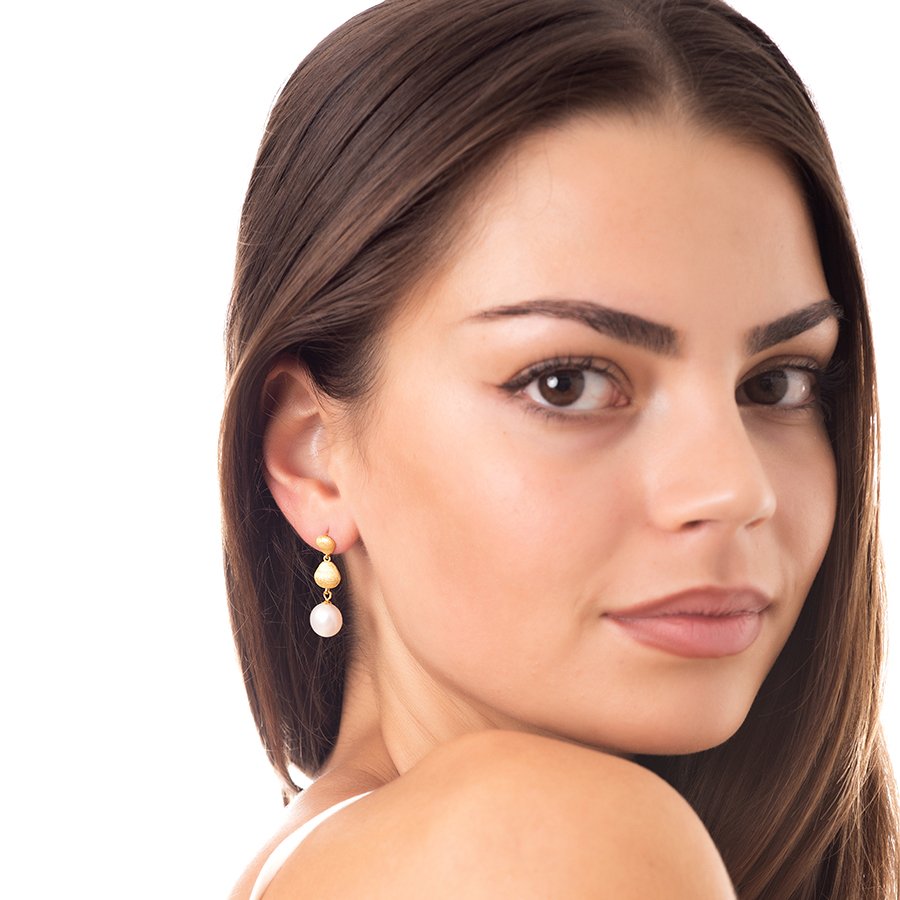 Oxzen σκουλαρίκια κρεμαστά ασημένια χειροποίητα με πέρλα Majorica