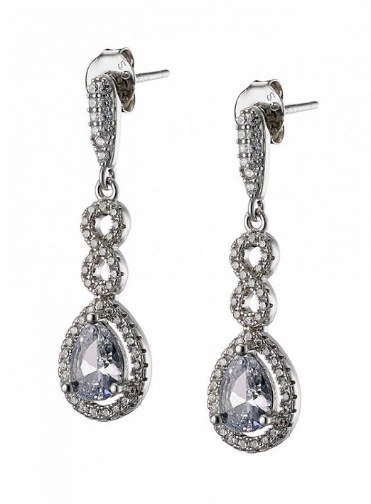 Oxzen σκουλαρίκια κρεμαστά ασημένια δάκρυ με λευκά ζιργκόν