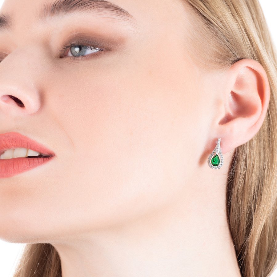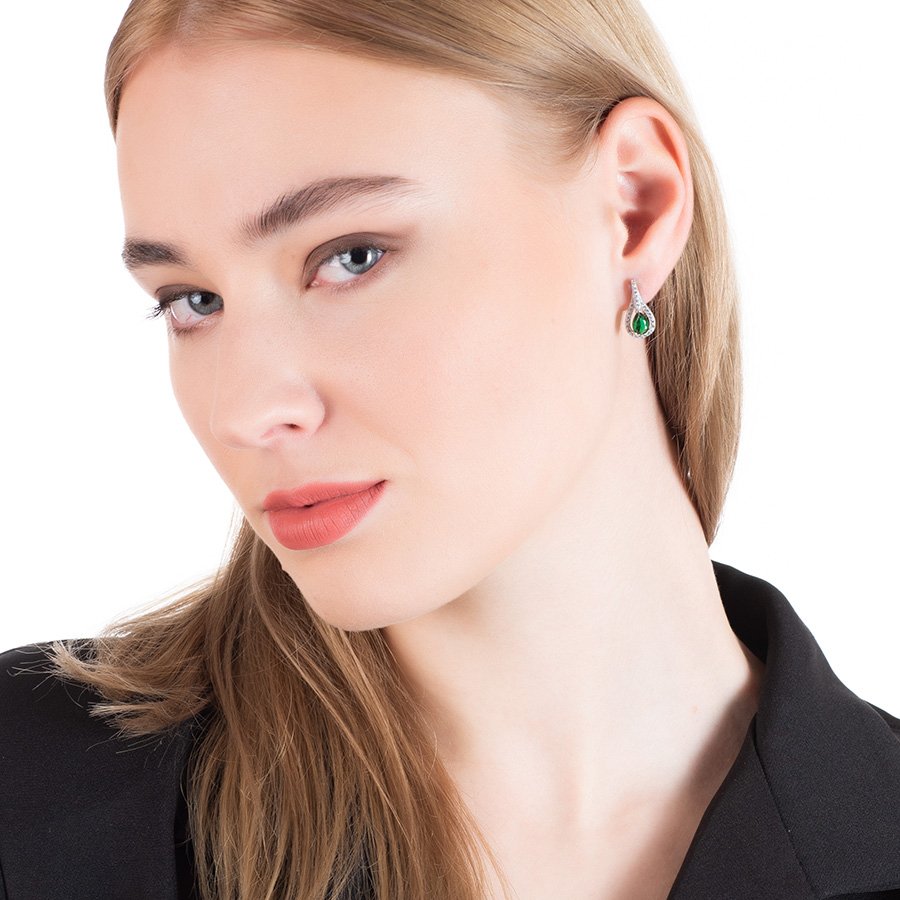 Oxzen σκουλαρίκια κρεμαστά ασημένια δάκρυ με ζιργκόν