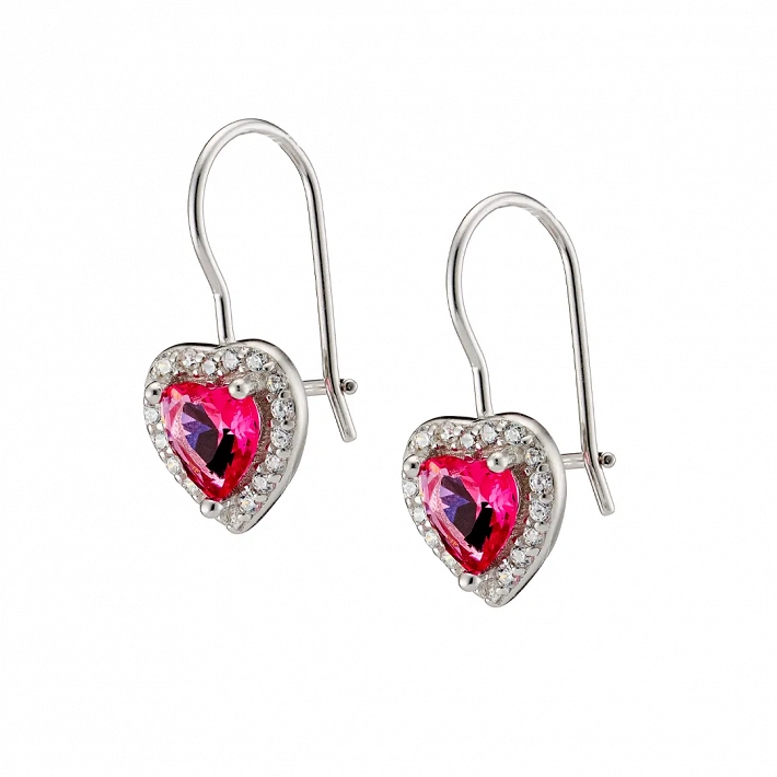 Oxzen σκουλαρίκια κρεμαστά ασημένια καρδιά με ζιργκόν