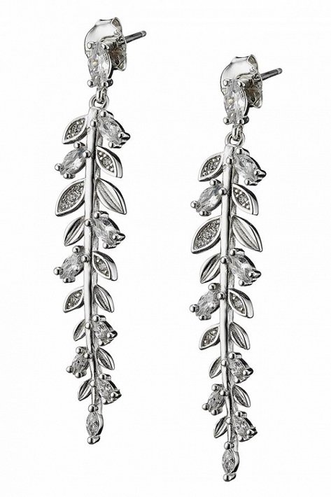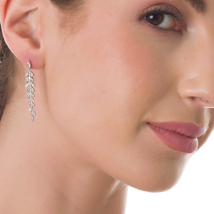 Oxzen σκουλαρίκια κρεμαστά ασημένια κλαδί ελιάς με λευκά ζιργκόν