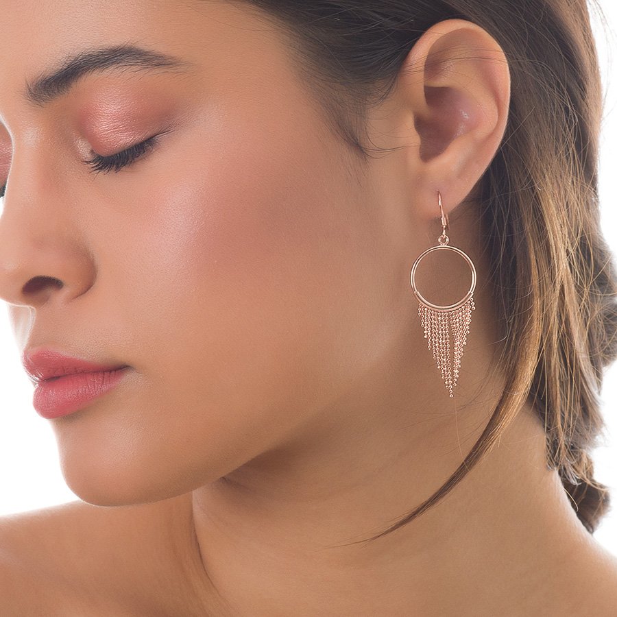 Oxzen σκουλαρίκια κρεμαστά ασημένια κρίκος με αλυσίδες