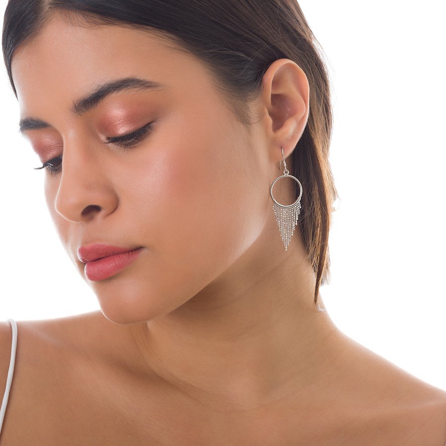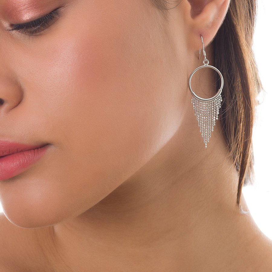 Oxzen σκουλαρίκια κρεμαστά ασημένια κρίκος με αλυσίδες