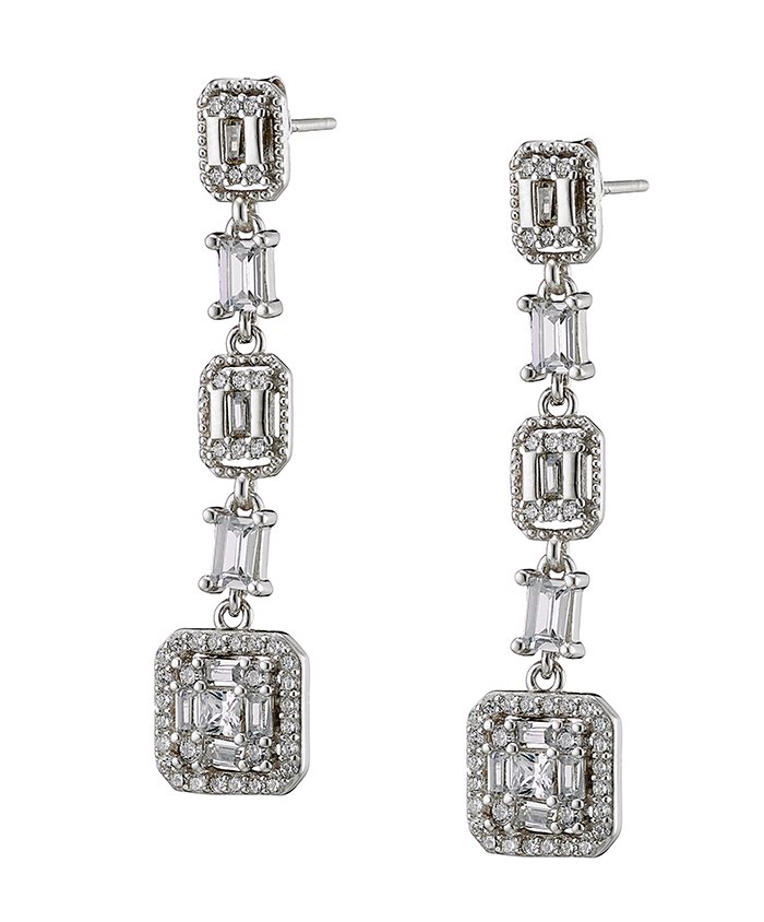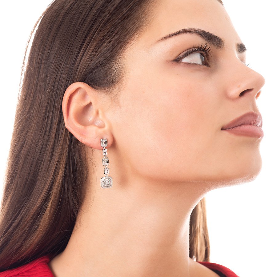 Oxzen σκουλαρίκια κρεμαστά ασημένια μακρύ γεμάτο με λευκά ζιργκόν