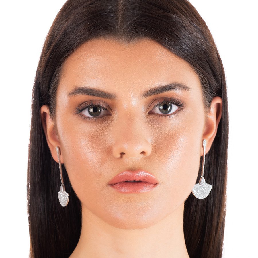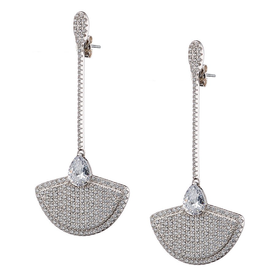 Oxzen σκουλαρίκια κρεμαστά ασημένια μακρύ γεμάτο με λευκά ζιργκόν