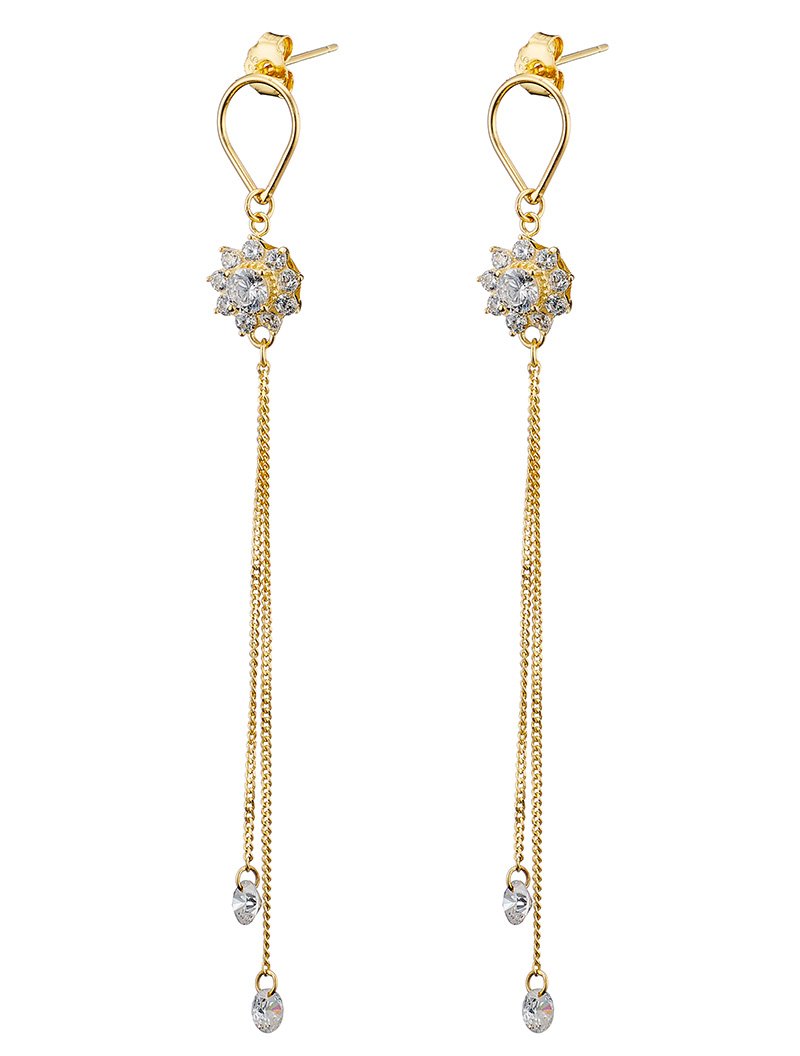 Oxzen σκουλαρίκια κρεμαστά ασημένια μακρύ με λευκά ζιργκόν