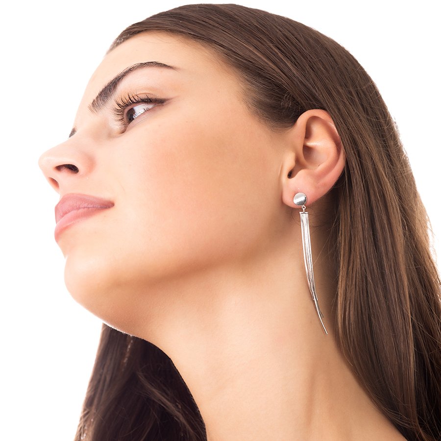 Oxzen σκουλαρίκια κρεμαστά ασημένια μακρύ με πενταπλή αλυσίδα