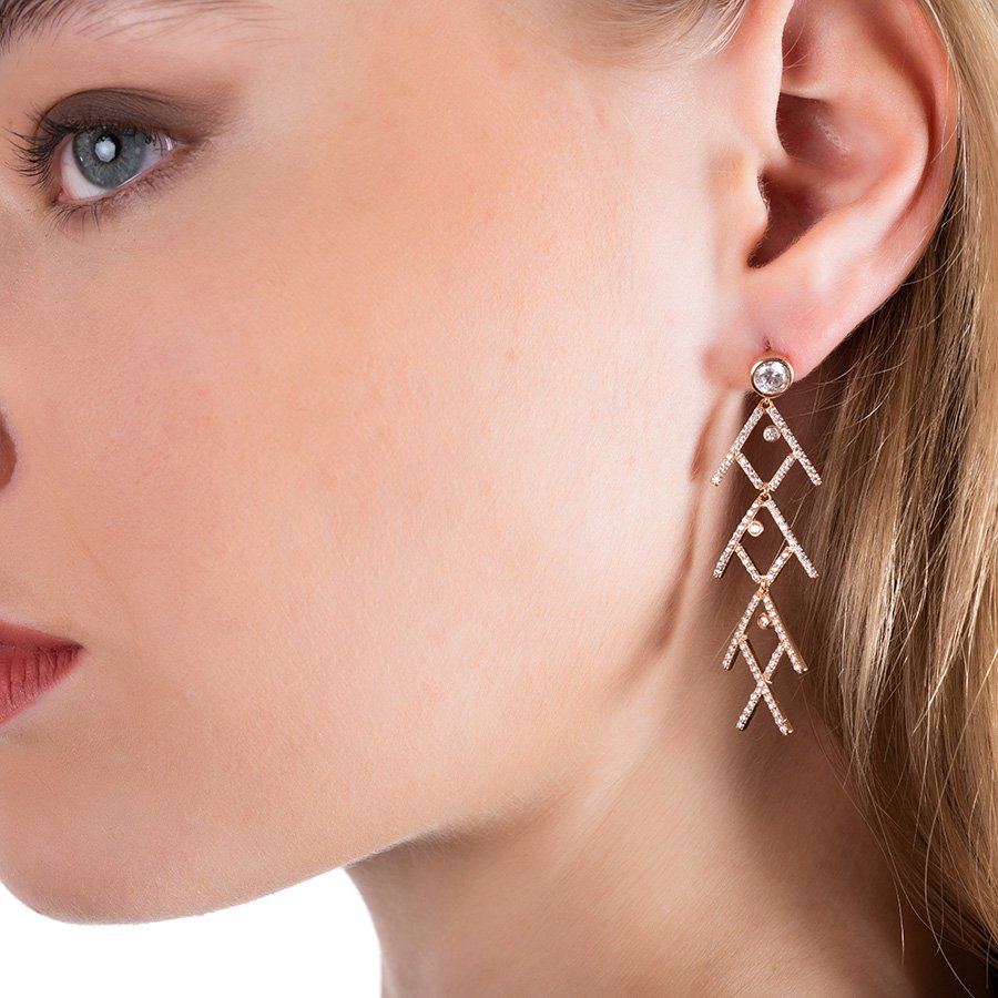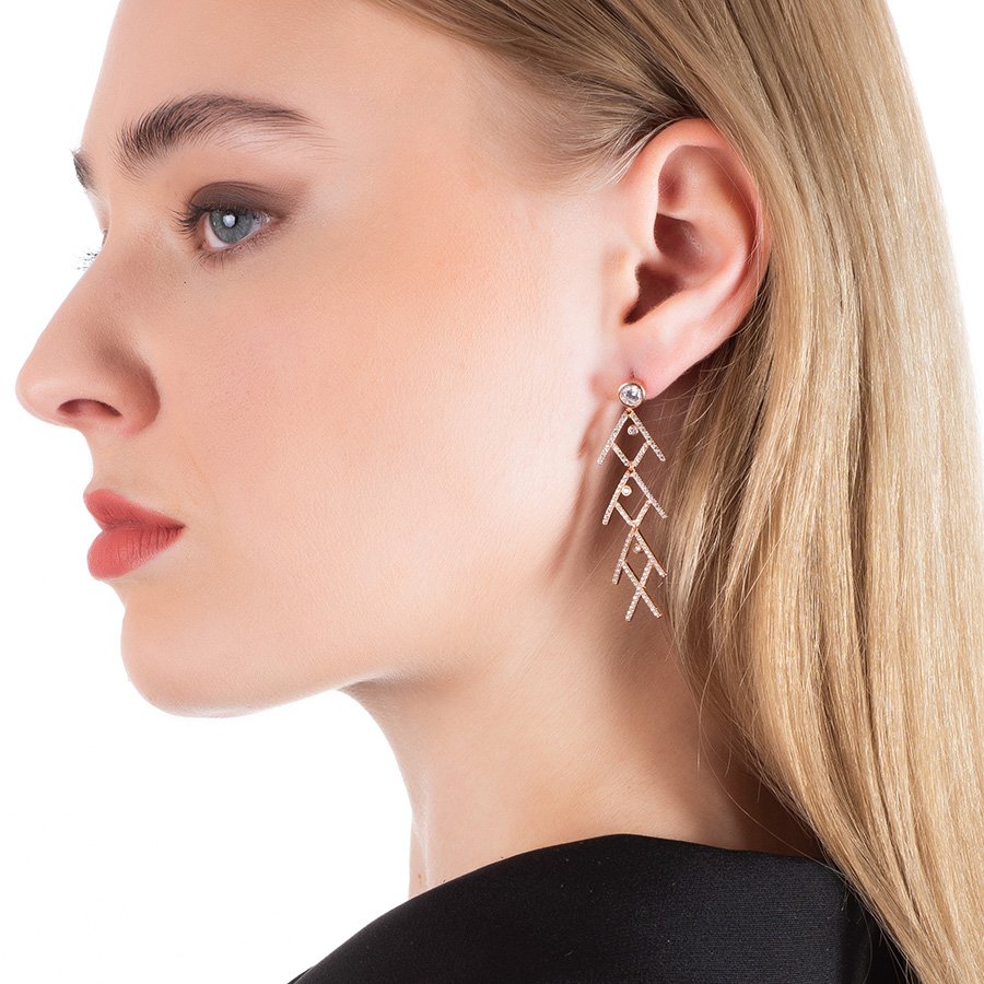 Oxzen σκουλαρίκια κρεμαστά ασημένια μακρύ σχήμα Χ γεμάτο ζιργκόν