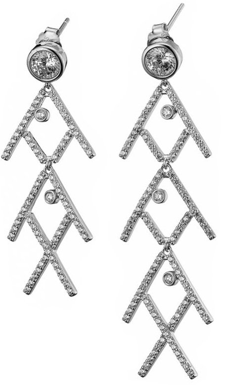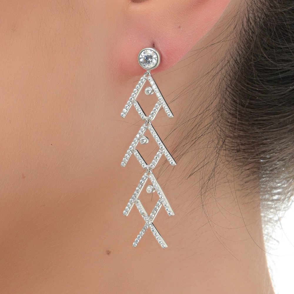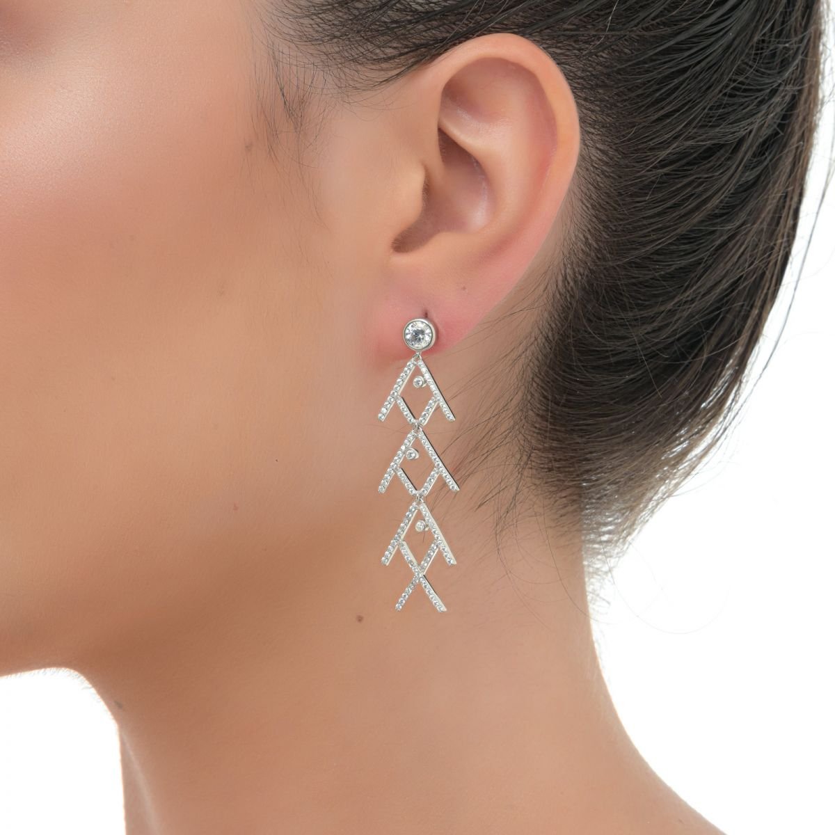 Oxzen σκουλαρίκια κρεμαστά ασημένια μακρύ σχήμα Χ γεμάτο ζιργκόν