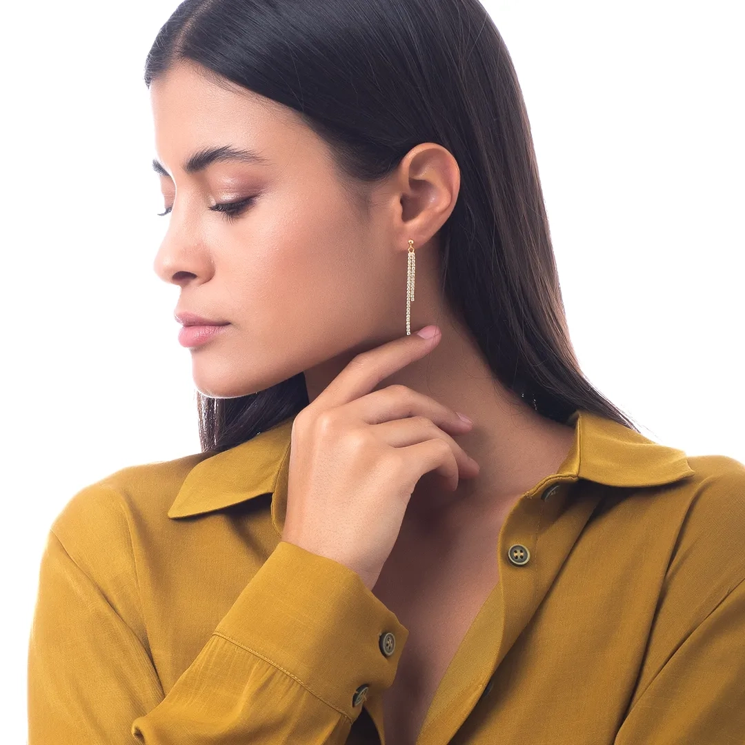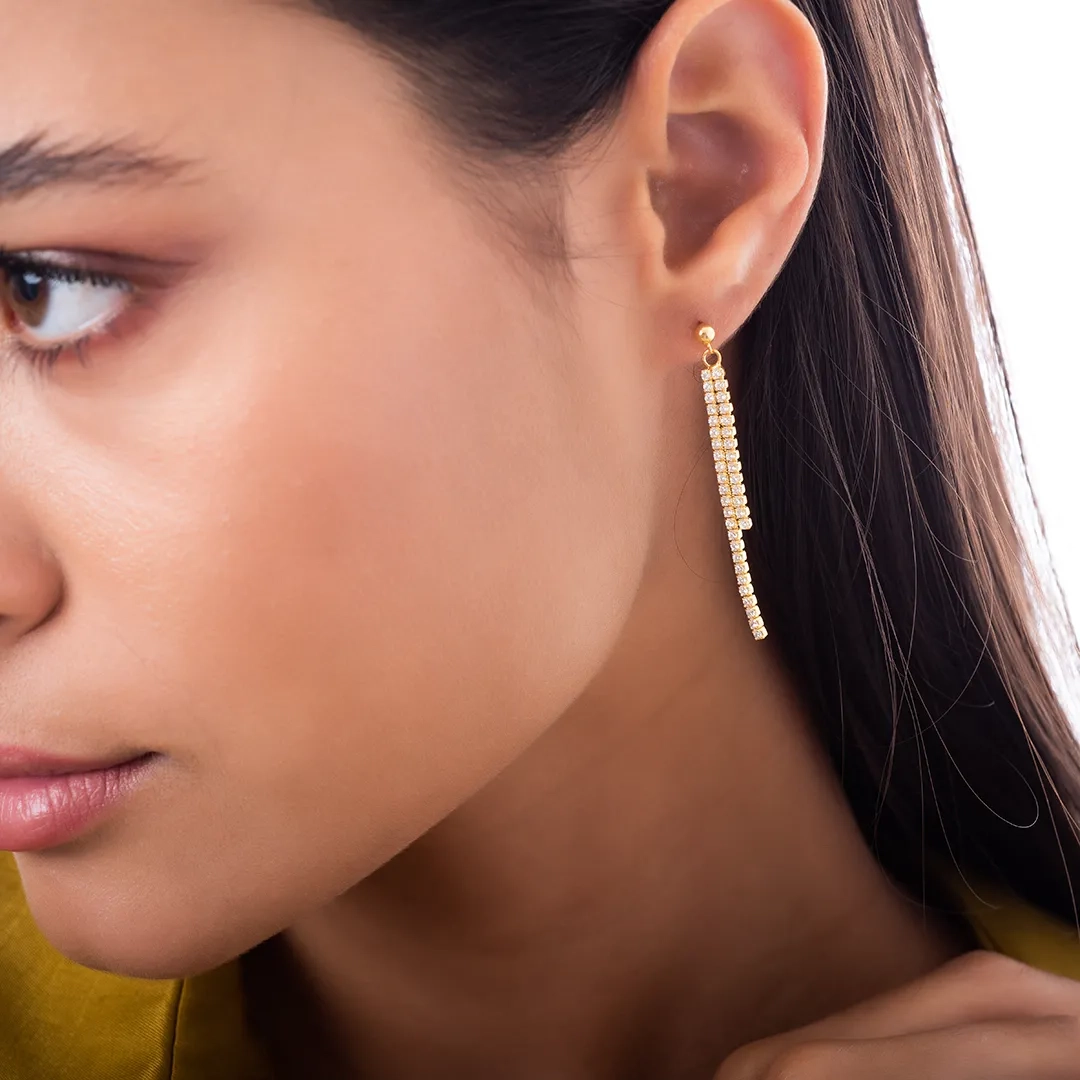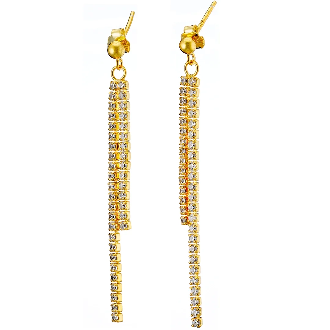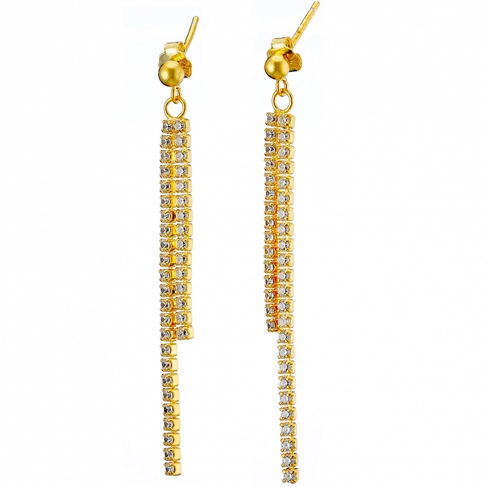 Oxzen σκουλαρίκια κρεμαστά ασημένια με διπλή σειρά ζιργκόν