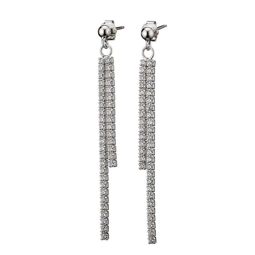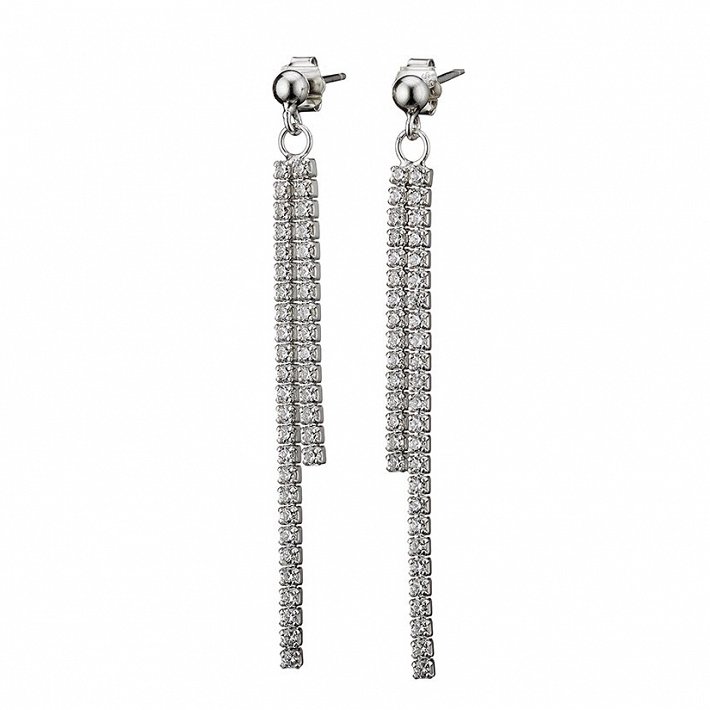 Oxzen σκουλαρίκια κρεμαστά ασημένια με διπλή σειρά ζιργκόν