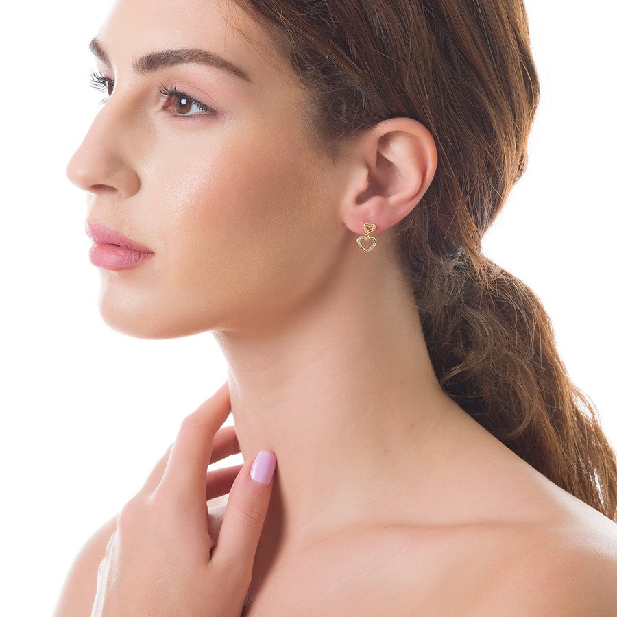 Oxzen σκουλαρίκια κρεμαστά ασημένια με καρδιά