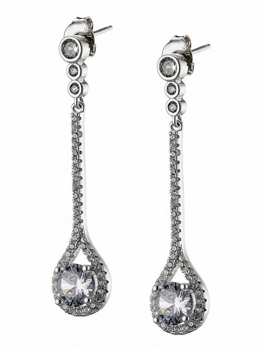 Oxzen σκουλαρίκια κρεμαστά ασημένια με λευκά ζιργκόν