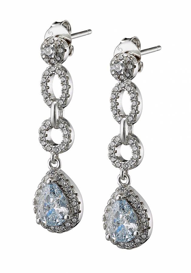 Oxzen σκουλαρίκια κρεμαστά ασημένια με λευκά ζιργκόν