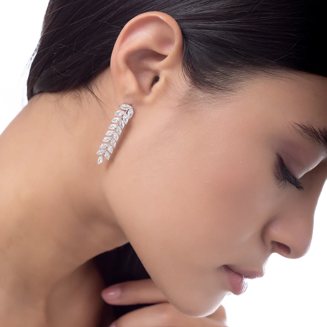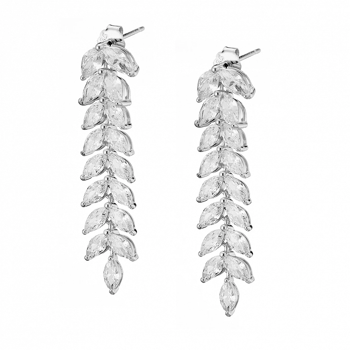 Oxzen σκουλαρίκια κρεμαστά ασημένια με λευκά ζιργκόν