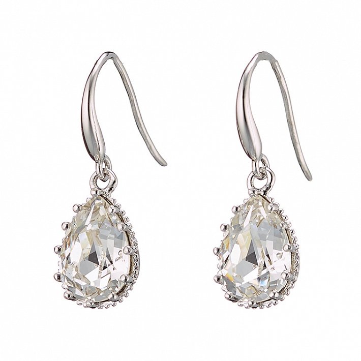 Oxzen σκουλαρίκια κρεμαστά ασημένια με λευκή πέτρα Swarovski