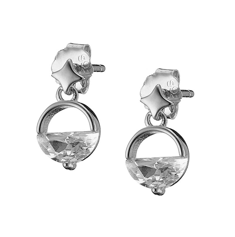 Oxzen σκουλαρίκια κρεμαστά ασημένια με λευκό ζιργκόν