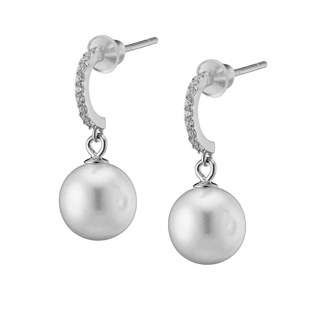 Oxzen σκουλαρίκια κρεμαστά ασημένια με πέρλα και λευκά ζιργκόν