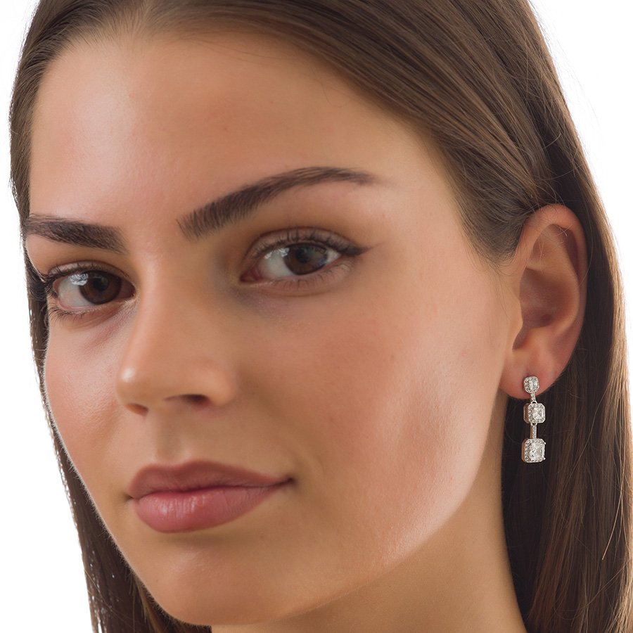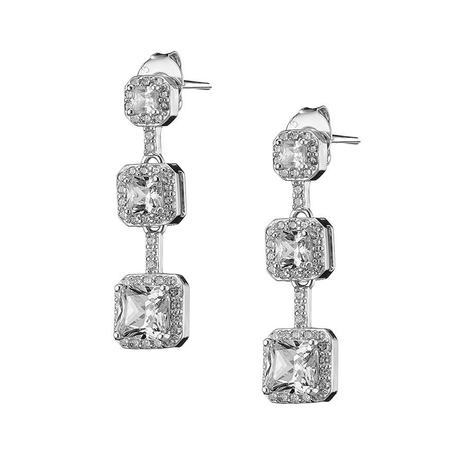 Oxzen σκουλαρίκια κρεμαστά ασημένια με τετράγωνα κρεμαστά ζιργκόν