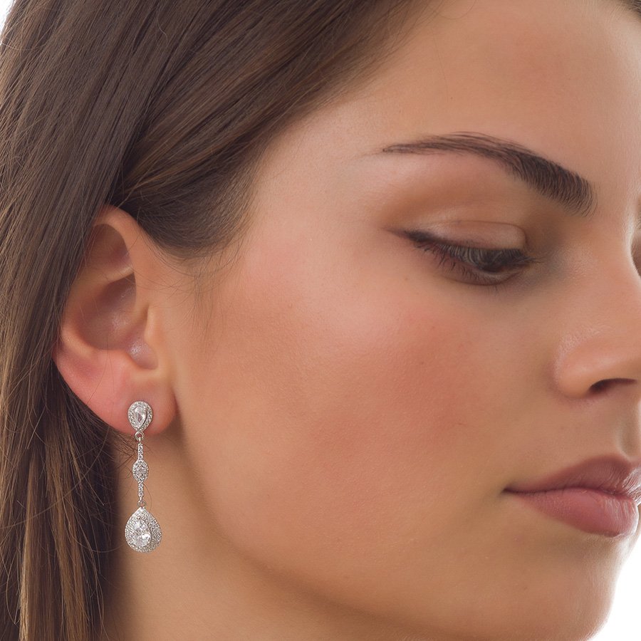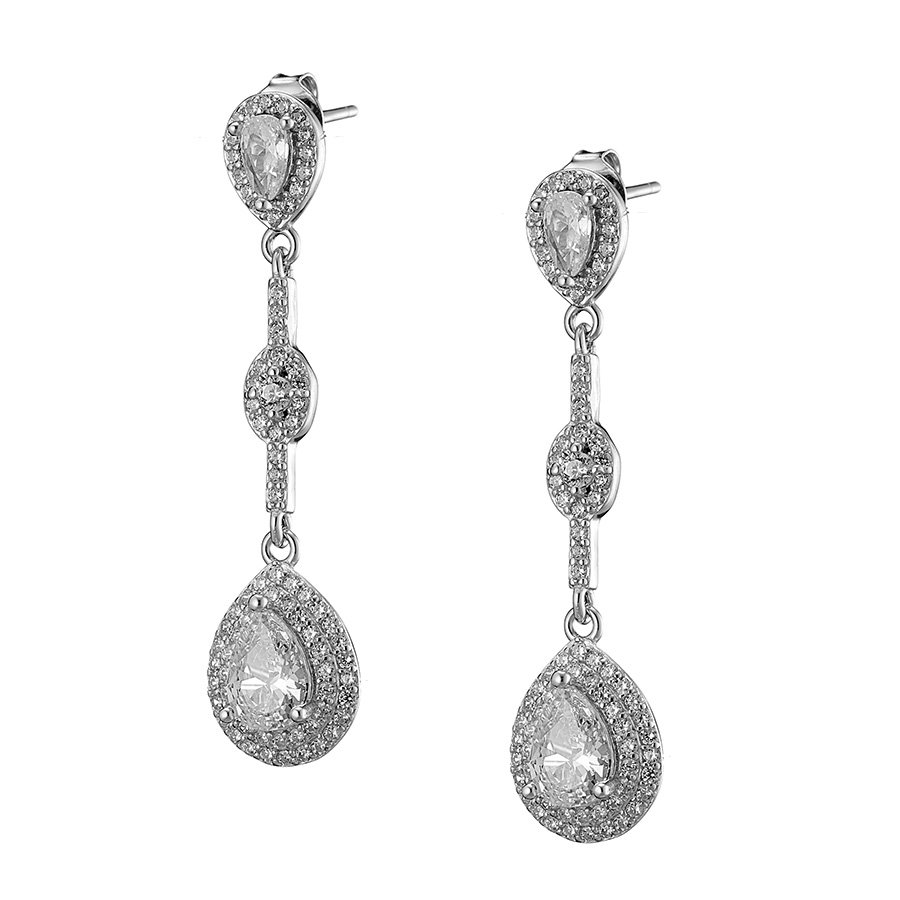 Oxzen σκουλαρίκια κρεμαστά ασημένια με ζιργκόν σε σχήμα δάκρυ