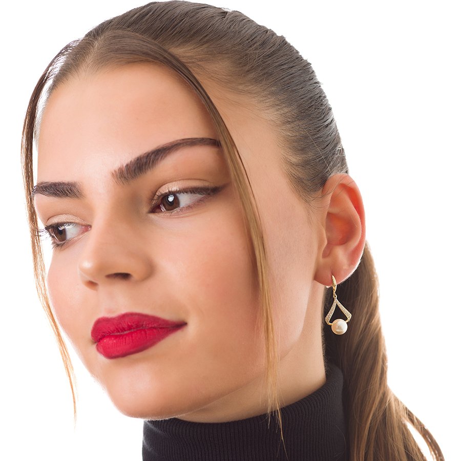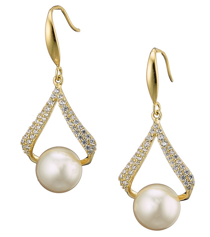 Oxzen σκουλαρίκια κρεμαστά ασημένια πέρλα Majorica και ζιργκόν