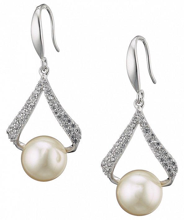 Oxzen σκουλαρίκια κρεμαστά ασημένια πέρλα Majorica και ζιργκόν