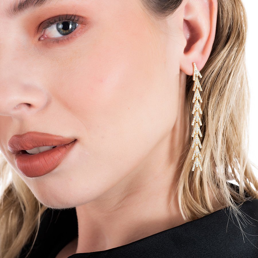 Oxzen σκουλαρίκια κρεμαστά ασημένια πολύ μακρύ με micro ζιργκόν