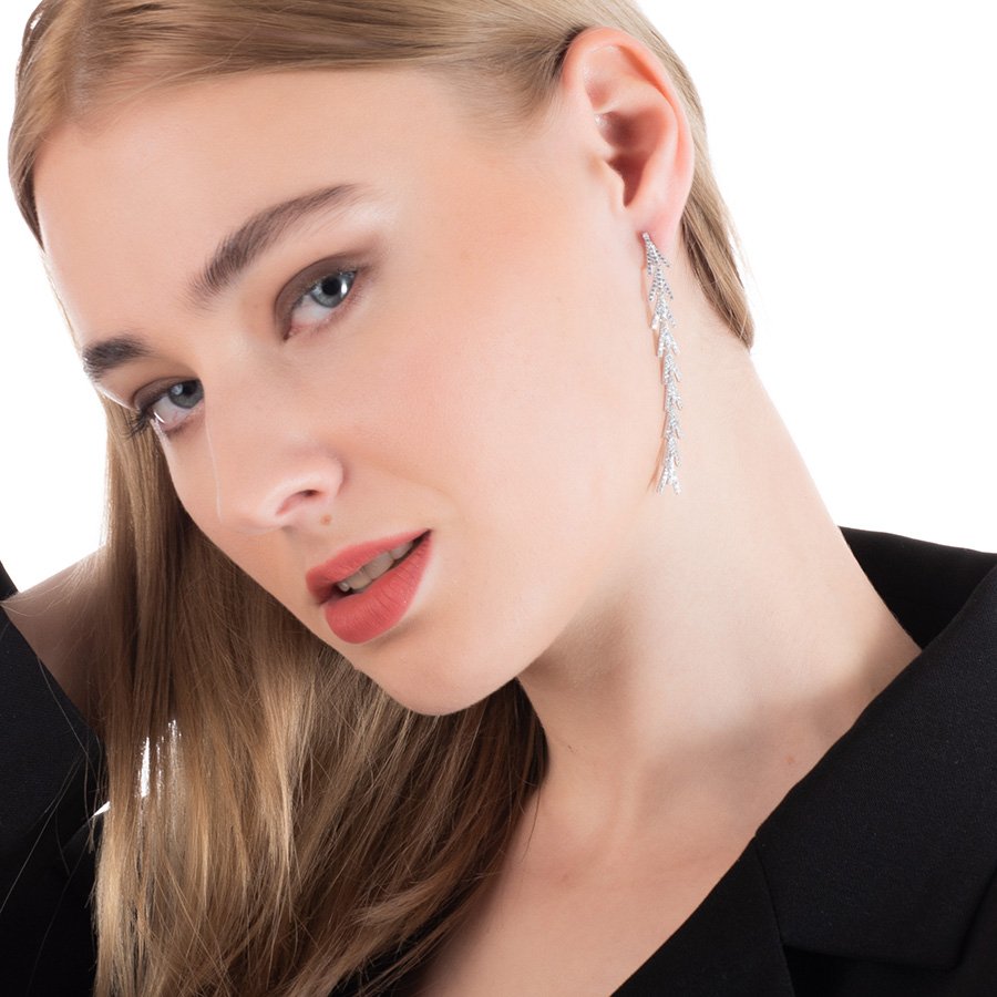 Oxzen σκουλαρίκια κρεμαστά ασημένια πολύ μακρύ με micro ζιργκόν