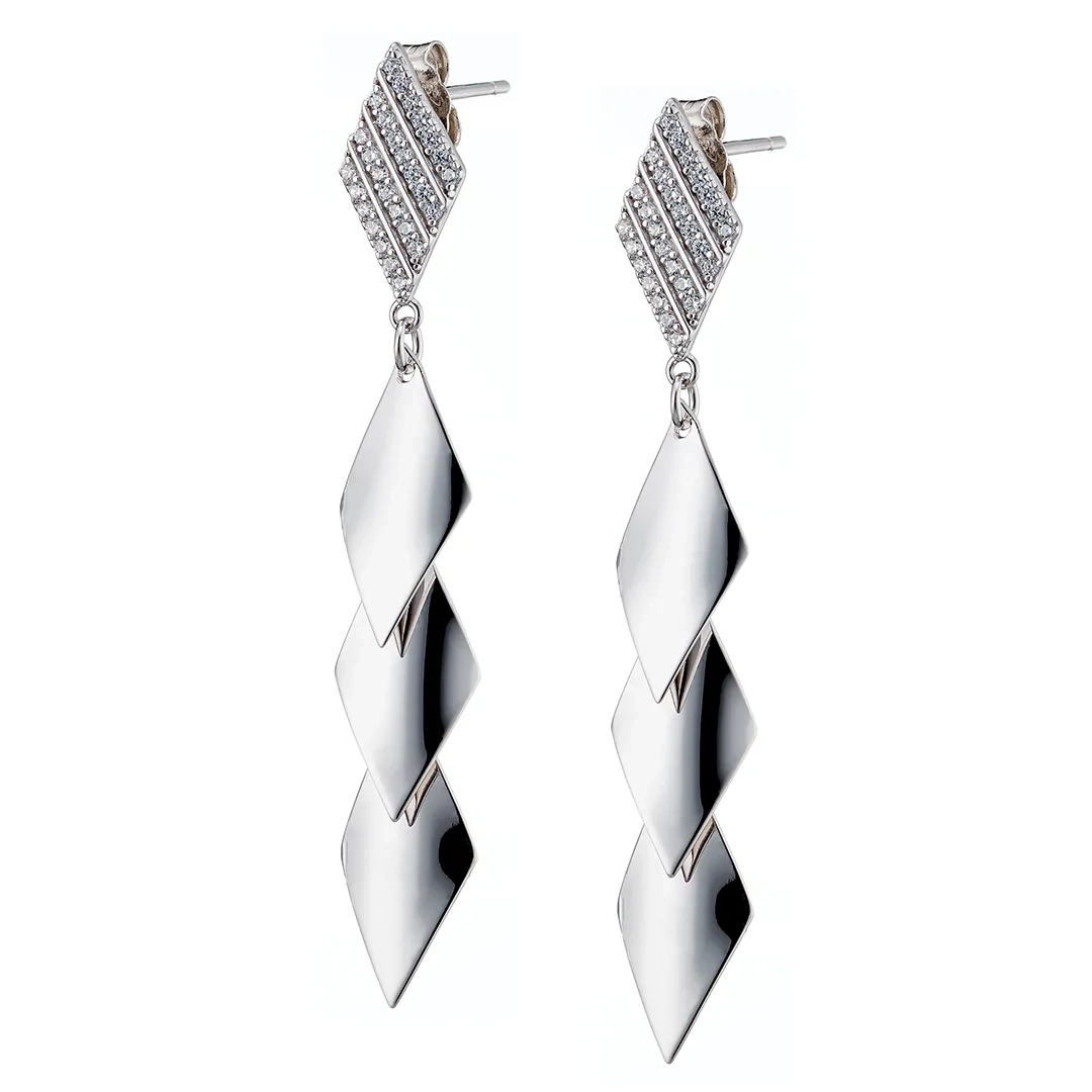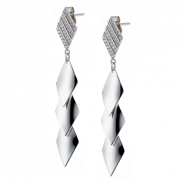 Oxzen σκουλαρίκια κρεμαστά ασημένια ρόμβοι με λευκά ζιργκόν
