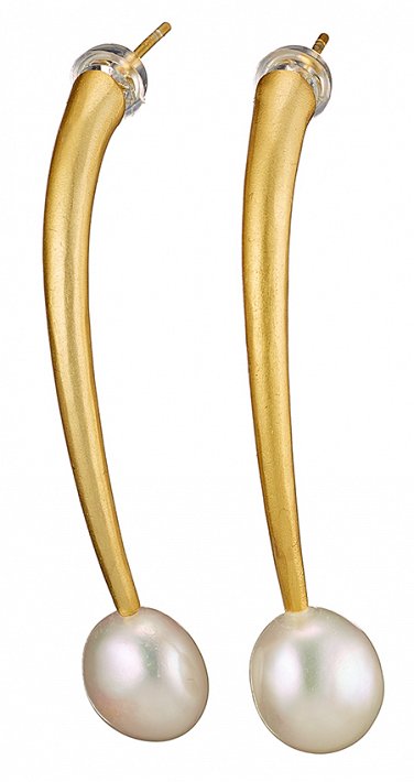 Oxzen σκουλαρίκια κρεμαστά ασημένια σε χρυσό χειροποίητα με φυσικό μαργαριτάρι ακατέργαστο