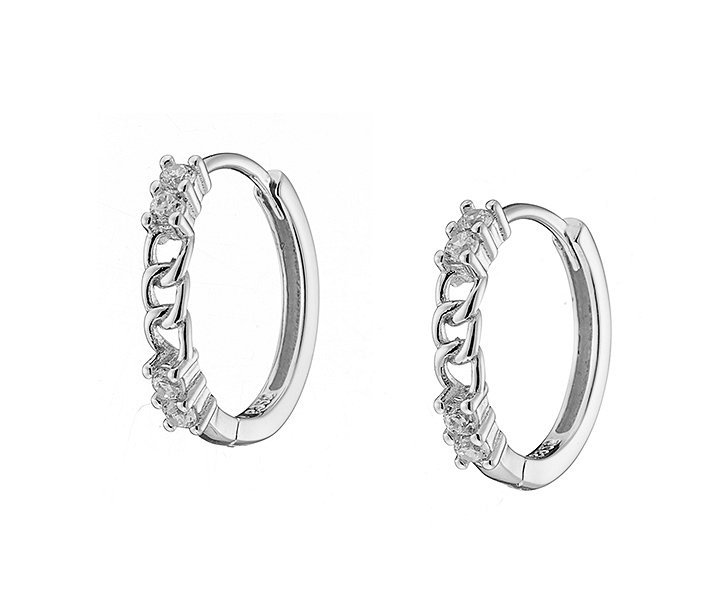 Oxzen σκουλαρίκια κρικάκια μικρά ασημένια 10mm με πέτρες ζιργκόν