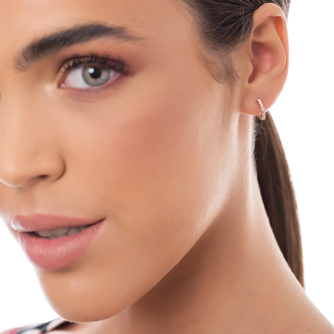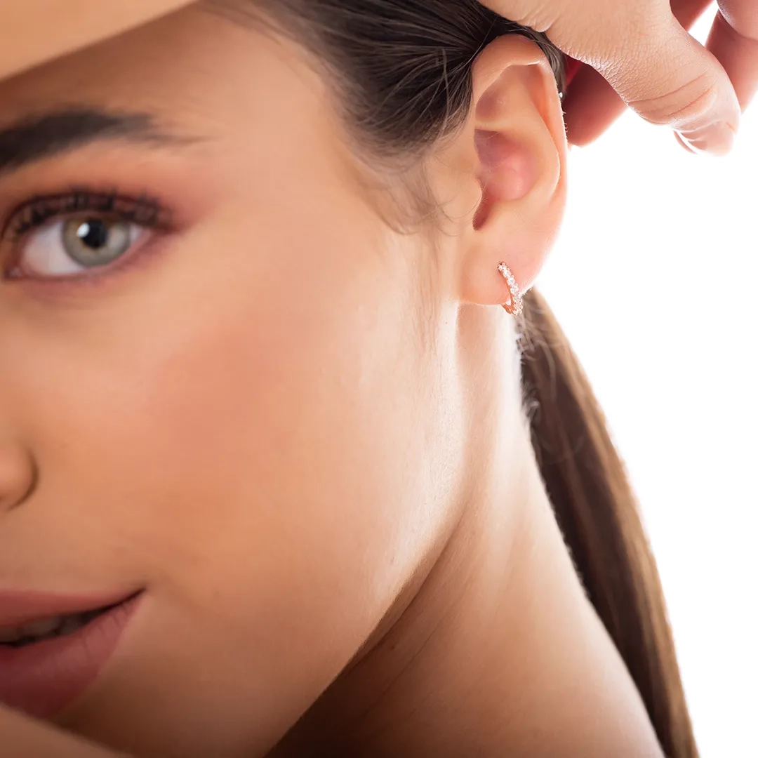 Oxzen σκουλαρίκια κρικάκια μικρά ασημένια με λευκά ζιργκόν