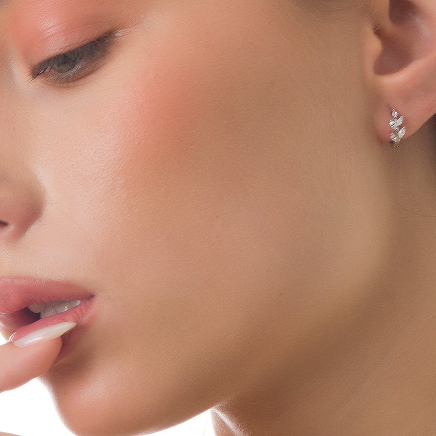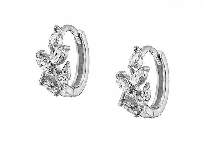 Oxzen σκουλαρίκια κρικάκια μικρά ασημένια με λευκά ζιργκόν