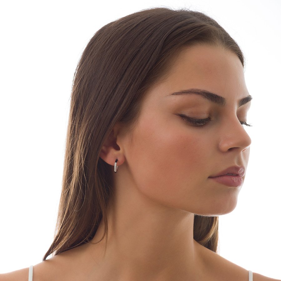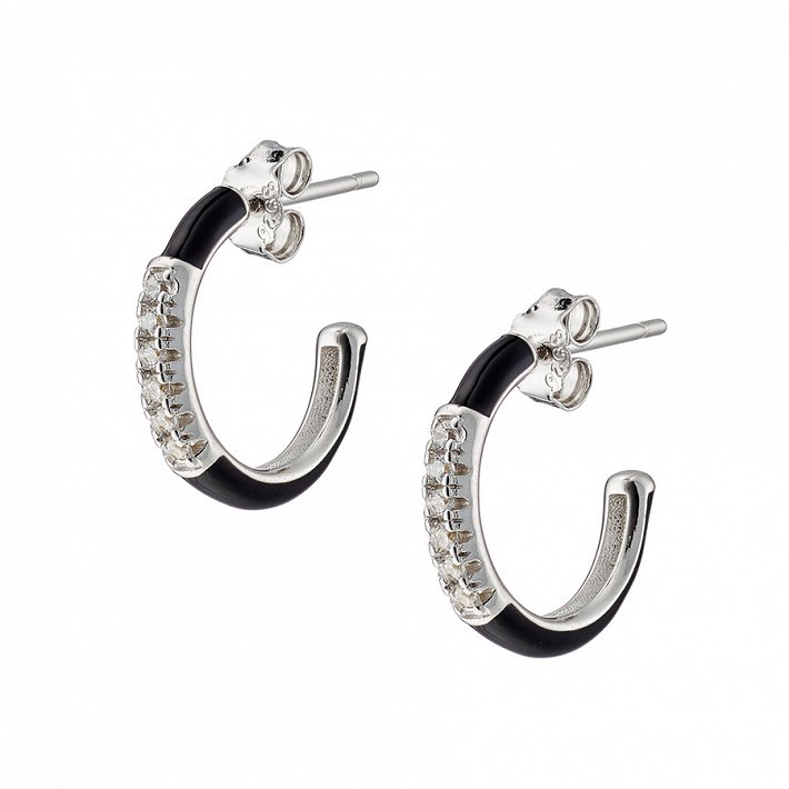 Oxzen σκουλαρίκια κρικάκια μικρά ασημένια με μαύρο σμάλτο και λευκά ζιργκόν