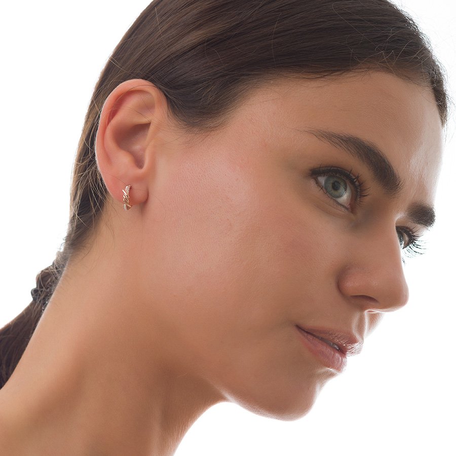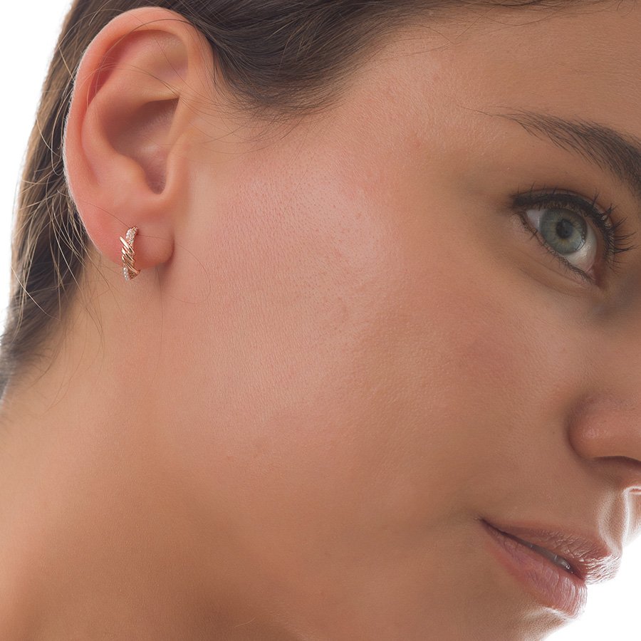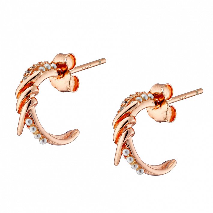 Oxzen σκουλαρίκια κρικάκια μικρά ασημένια με περλίτσες και λευκά ζιργκόν