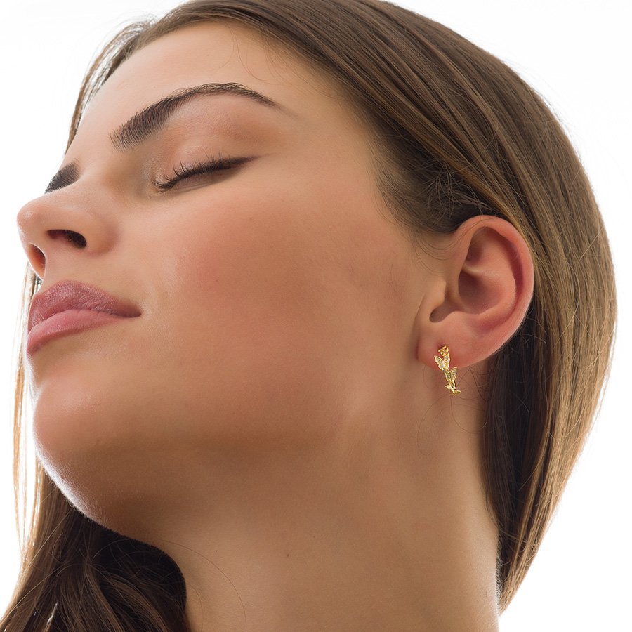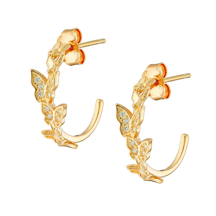 Oxzen σκουλαρίκια κρικάκια μικρά ασημένια με πεταλούδες και πέτρες ζιργκόν