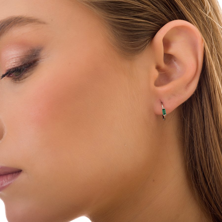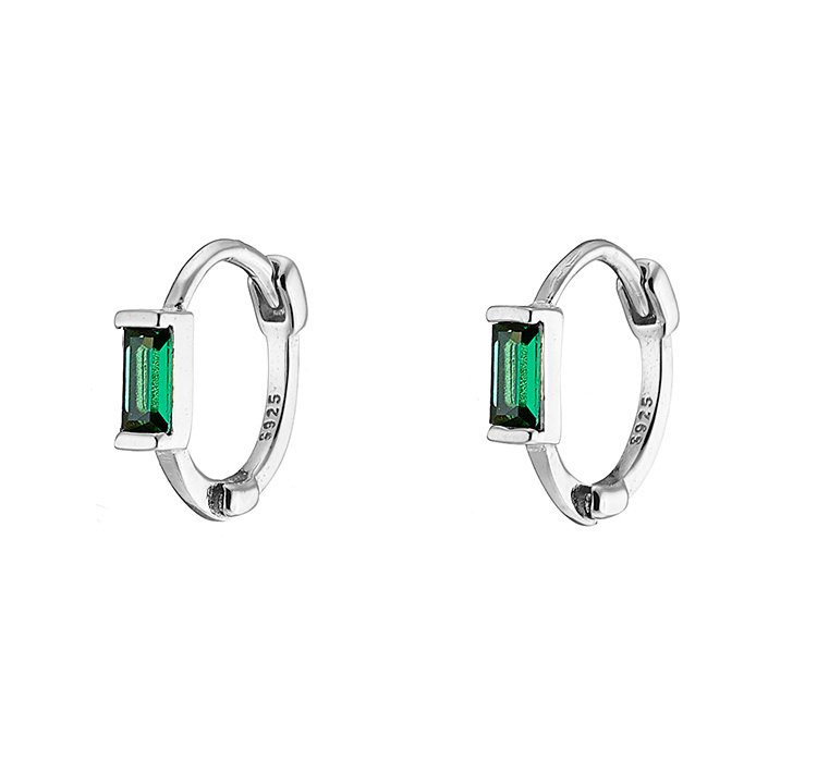 Oxzen σκουλαρίκια κρικάκια μικρά ασημένια με πράσινο ζιργκόν