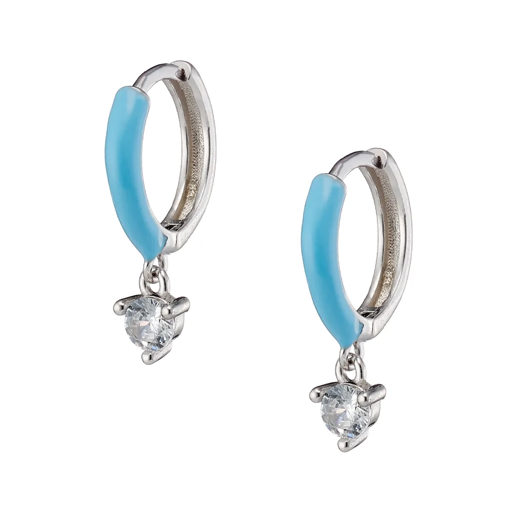 Oxzen σκουλαρίκια κρικάκια μικρά ασημένια με σμάλτο και κρεμαστό ζιργκόν