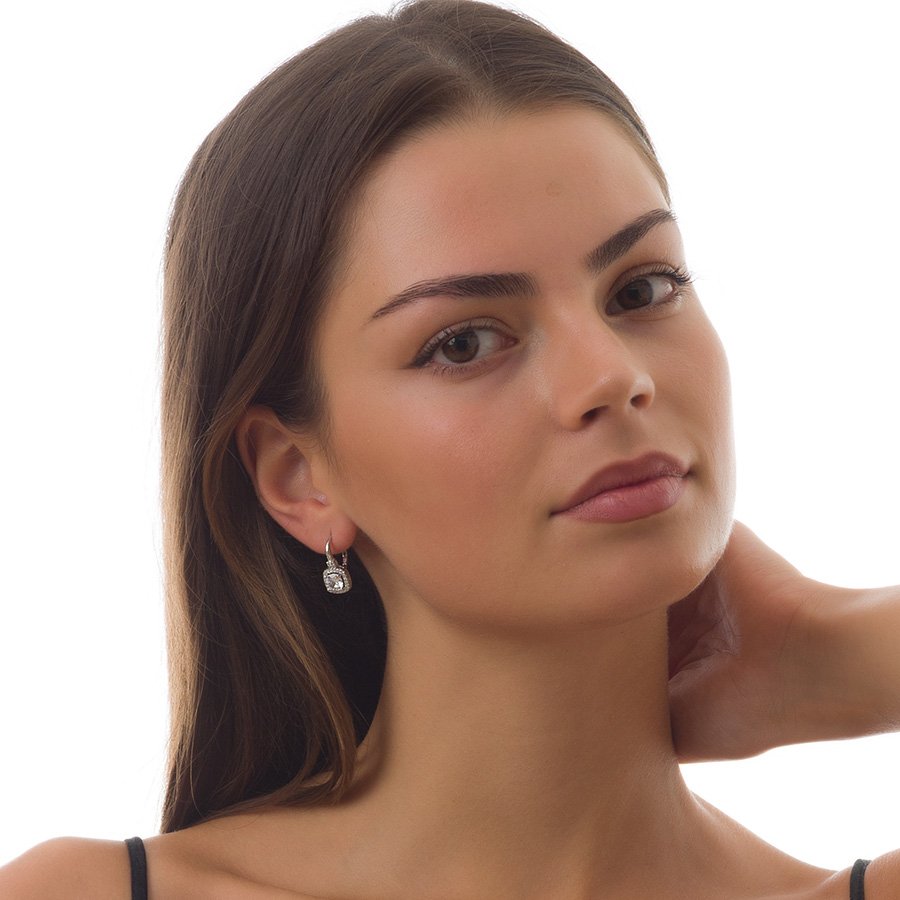 Oxzen σκουλαρίκια κρικάκια μικρά ασημένια με τετράγωνη πέτρα ζιργκόν