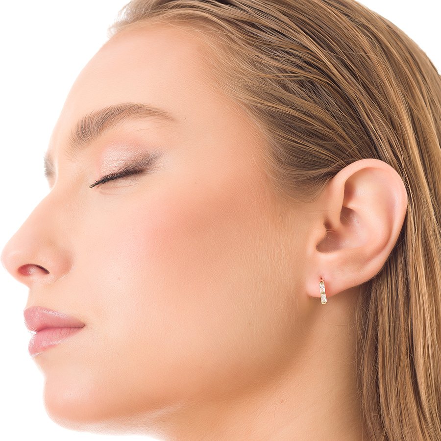 Oxzen σκουλαρίκια κρικάκια μικρά ασημένια στρογγυλά με πέτρες ζιργκόν