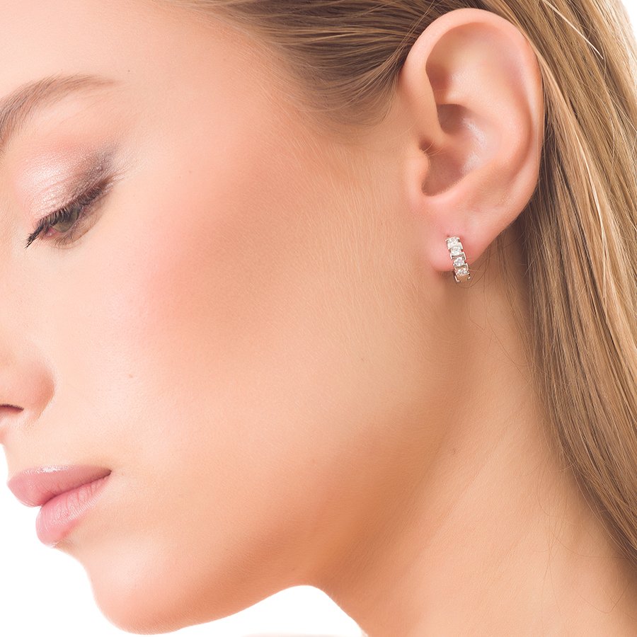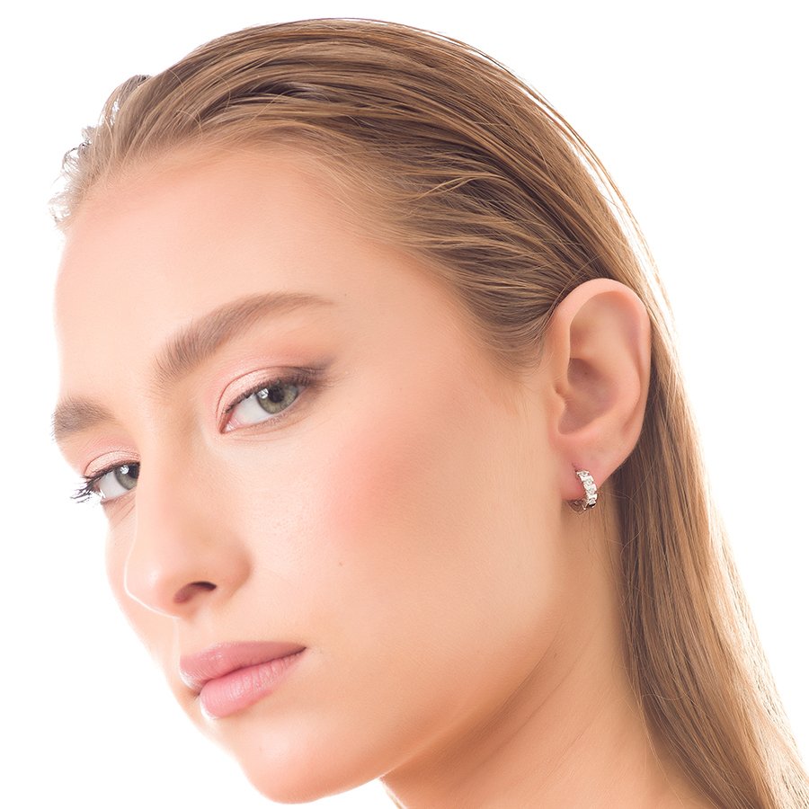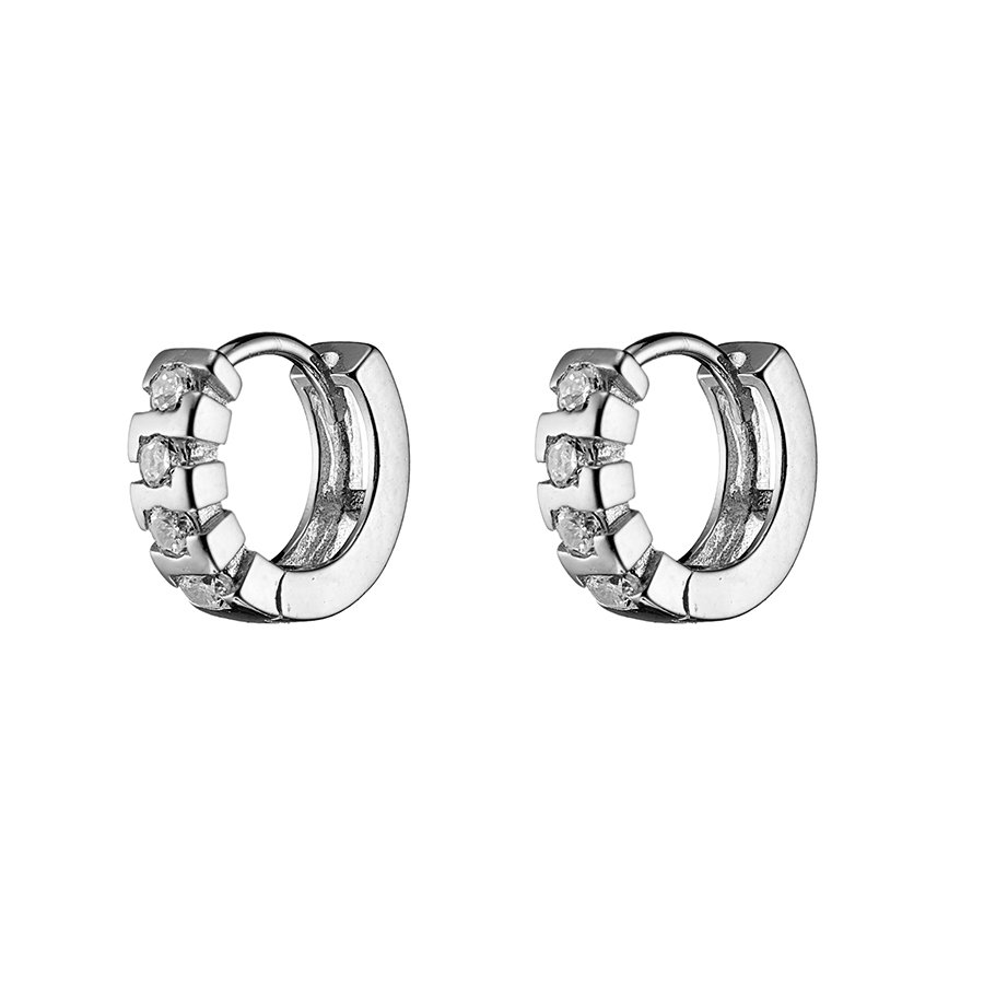 Oxzen σκουλαρίκια κρικάκια μικρά ασημένια στρογγυλά με πέτρες ζιργκόν