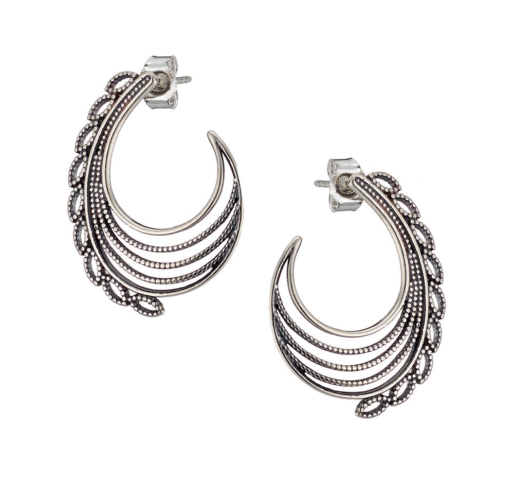 Oxzen σκουλαρίκια κρίκοι ασημένιοι χειροποίητοι με ιδιαίτερο σχήμα